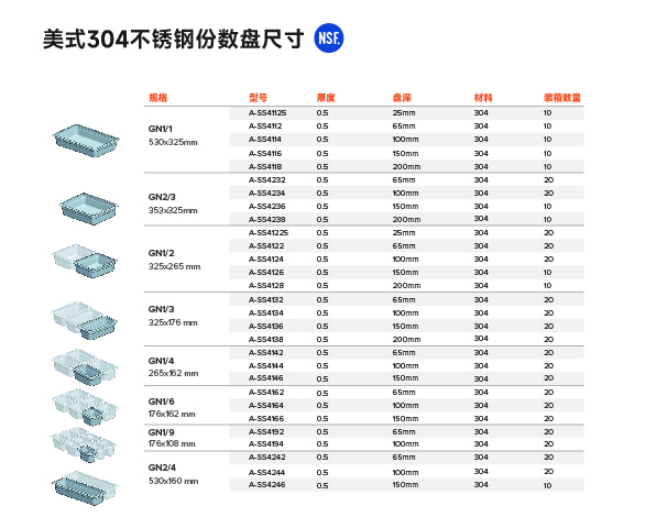 ? 份數(shù)盤由高質量不銹鋼制成,經(jīng)久耐用。 ? 可用于烹飪,儲存,保持食物的熱/冷和服務。 ? 歐式設計:防干擾設計,有加強筋,避免粘在一起 ? 易于儲存:同樣大小的可以堆疊在一起,不使用時可以節(jié)省空間。 ? 易于清潔。- 顏色: